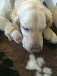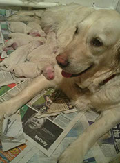 Lily's first litter of puppies was born on Tuesday 9th December 2014. All eight puppies were delivered successfully - all breathing and healthy. Lily is being a wonderful mummy and is doing a great job at looking after her babies.